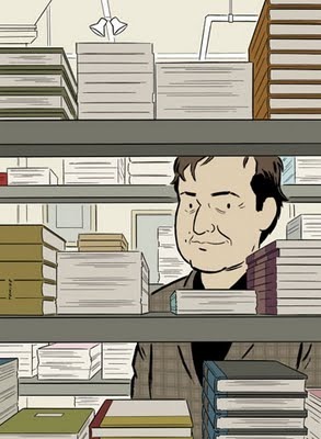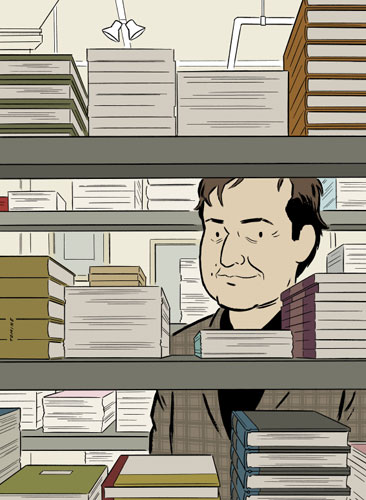 Illustration by Adrian Tomine of Drawn & Quarterly publisher Chris Oliveros, published in the November 9, 2009 issue of Canadian Business.