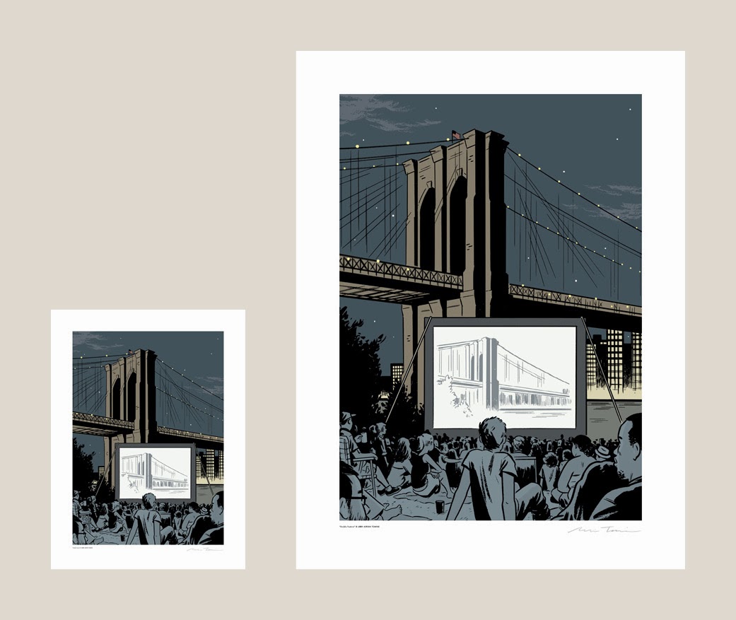 We are now offering select prints in two sizes: the original 18" x 24" version and the new "half size / half price" version. Both iterations feature the same high–quality paper stock and printing, and both are individually signed (in pencil) by Adrian. Please visit the