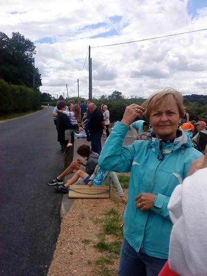 Adriano Malori riding past Bethanie at the head of the Tour de France pack. He held his lead for almost 200k, but lost it 2.6k from the finish in Lisieux. We braved the rain and a cavalcade of commercial razzmatazz to cheer the riders on their way… then watched the dramatic Lisieux finish on TV…