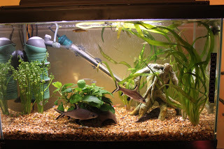 So it's half-three and the phone rings. It's my husband who I left at home in bed with man-flu this morning. He's been up and about and says that one of my catfish is stuck in the aquarium. Now this morning I remember seeing a bit of plastic pipe floating on the surface of the water - I pushed it back down to the bottom, weighted it with some gravel and realised the catfish was still in it. I thought he was probably a bit scared and he'd come out when I'd gone.