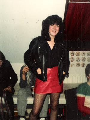 Here's the proof! I was 20, I think.When I was in my late teens and early twenties, I owned a bright red leather mini-skirt. I wore it to student parties in Liverpool in the early 1980s with red fishnets and a black leather biker jacket (I was a wannabe rock-chick). Why am I telling you this? Because to wear an outfit like that, you have to "be" the person that goes with it. You can't be shy or sit in a corner. It's a statement outfit that demands a statement personality to go with it. So you act. And I did. Frequently. It's not always easy to do - sometimes it requires a huge effort that half a bottle of wine doesn't fix on its own!