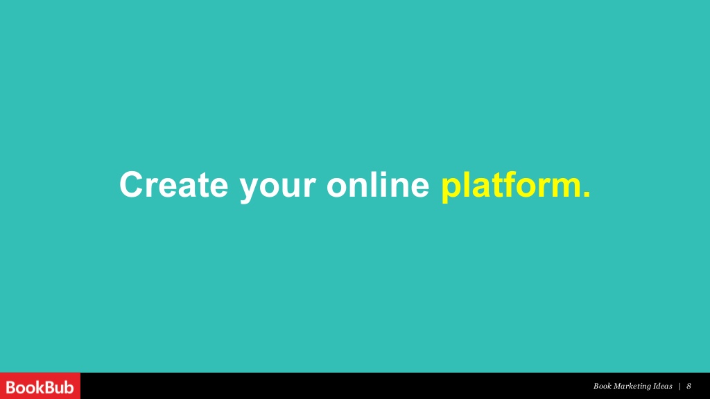 1. Create an author website. Your site should be a marketing tool that serves as the hub of all your online activity, from blogging to selling books to emailing a newsletter to participating in social media. Use a platform like WordPress, Squarespace, or Wix to easily build a site.