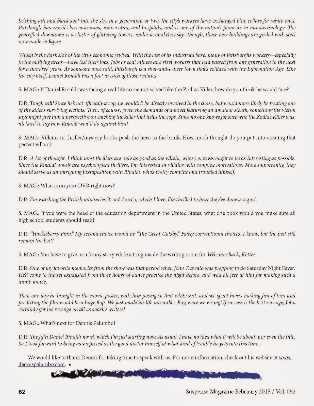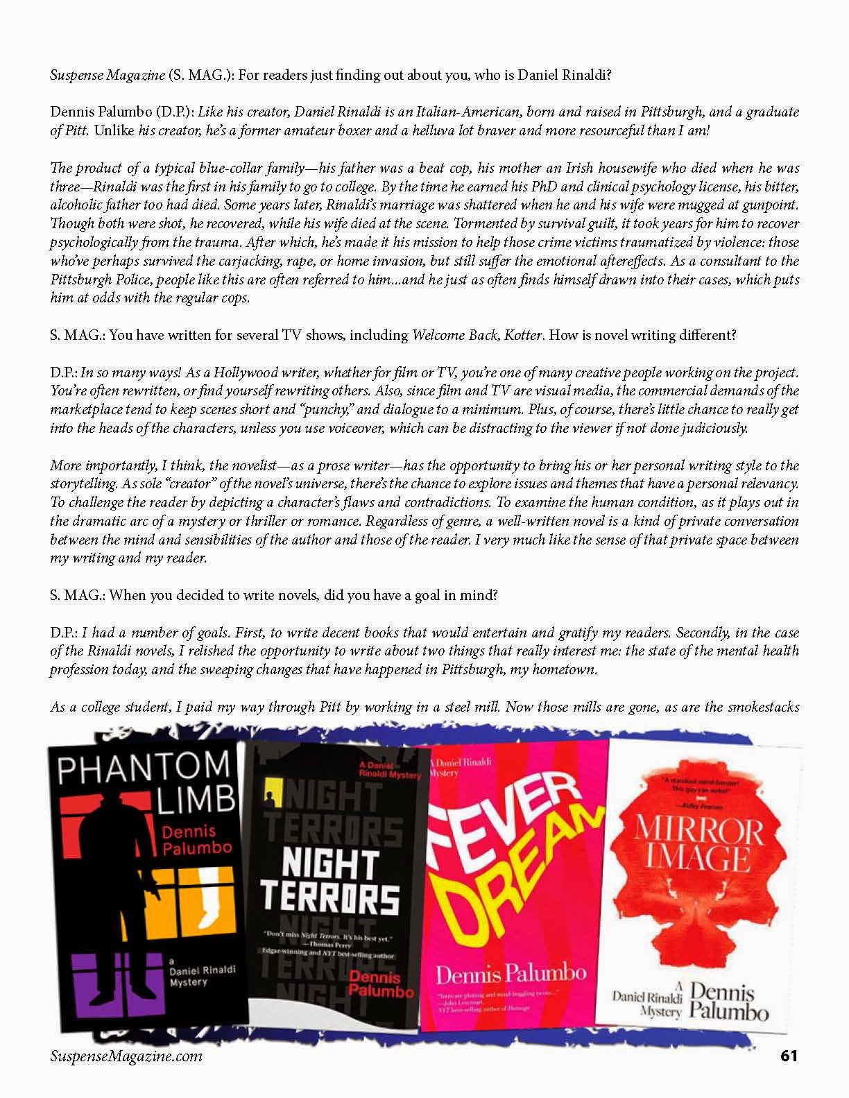 Dennis Palumbo Interviewed in the February Issue of Suspense Magazine