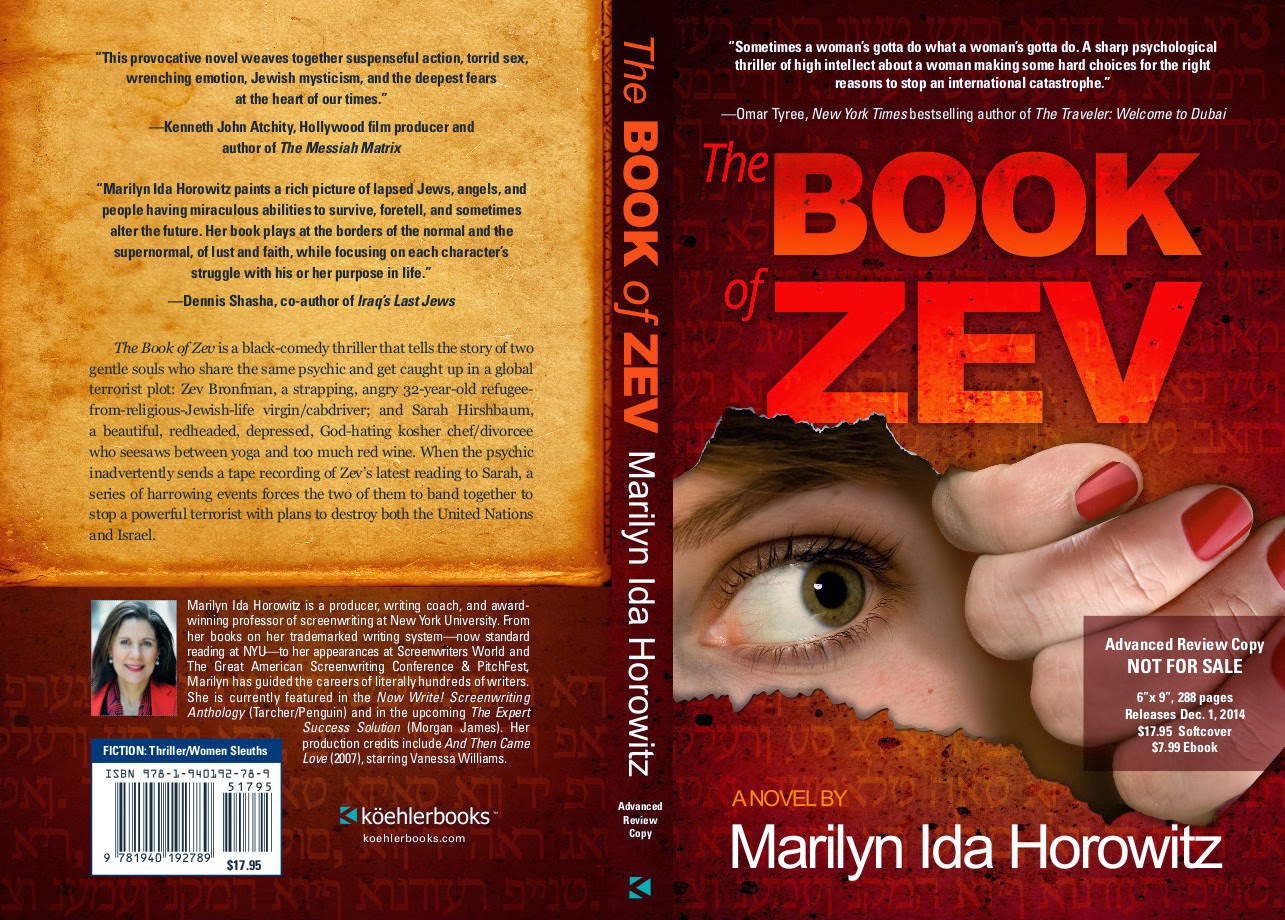 The Book of Zev is a black-comedy thriller that tells the story of two gentle people who change the course of history. Zev Bronfman, a strapping 32-year old-virgin, angry atheist, refugee from a religious Jewish life, and former engineer for the U.S. Patent Office in Alexandria, Virginia, drives a cab and sleeps around in New York City. After a bitter divorce, Sarah Hirshbaum, a beautiful, redheaded, depressed, God-hating kosher chef, seesaws between yoga and too much red wine. Independently, the two consult the same psychic who inadvertently sends Sarah Zev’s session tape. When Sarah contacts Zev to pick up the cassette, he discovers that she has been recruited by the Mossad to play Mata Hari with the current president of Iran, Mahmoud Zarafshan, who believes he is the 12th Imam, and must instigate Armageddon in order to facilitate the Second Coming. It is up to Sarah and Zev to thwart his plans.