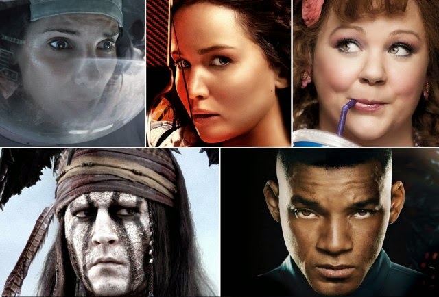 Clockwise from top: Sandra Bullock, Jennifer Lawrence, Melissa McCarthy, Will Smith, Johnny Depp.Hollywood: dumb or venal? I once thought the latter, but now I’m not so sure. The prompt was a study that came out this week claiming that of the 100 highest-grossing movies of 2013, only 15 featured women as their central protagonists.