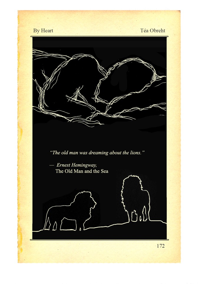 Téa Obreht: I read The Old Man and the Sea pretty early on, I think in middle school. You know how as memory distills and years go by, you just have one image that’s associated with something? What I remember most from that first encounter was this strange detail of lions running on a beach. Returning to the book as an adult, that seemed to make no sense. The story has nothing to do with lions. It’s a book about a fisherman and a giant marlin and this incredible battle that takes place out at sea. But the lions, who appear in this moment of interiority that’s stuck with me for years, help explain one of the qualities I look for most in fiction.