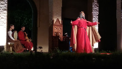 I often wonder why Spanish historical fiction feels no need to update the mode of delivery of the content. If I were writing a play about the Siege of Zamora, I would never think to use narrators, but would reveal all the complex story through action and dialogue with psychological development. But that's my Anglophone historical fiction perspective. This way of doing things pleases the audience because it's "more medieval," and that's what counts.