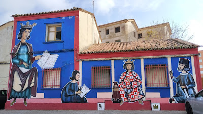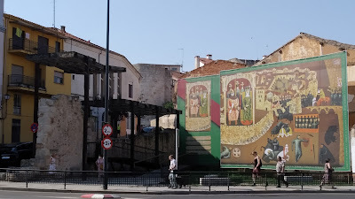 We toured Ciudad Real. It has a strong current of Don Quijote going on, less so of Alfonso X. The mural in the above photo was done last week, just in time for the 800th birthday. But I couldn't be stopped. We saw the mural, a couple of statues, and a fountain, and it was enough to keep me happy. I was coming full circle, finally seeing a concert in Ciudad Real--not Manolo, but Alfonso, and I was comparably excited.