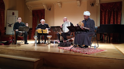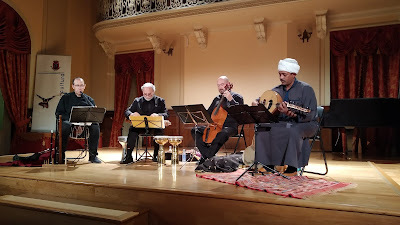 Eduardo Paniagua talked with the audience between cantigas. He explained the miracles and their context, his perceptions of Alfonso's contribution to world culture, and how moved he was to be playing cantigas in Ciudad Real on November 23, 2021. I'd seen interviews with him before, and he always struck me as a very practical, no-nonsense kind of guy. But you can't be strictly practical and head a project of this magnitude for thirty years. Perhaps he's both down-to-earth and unbelievably passionate about this best of all medieval books, rather like I imagine Alfonso X himself.