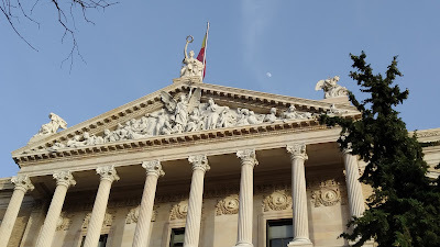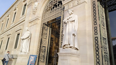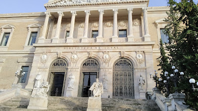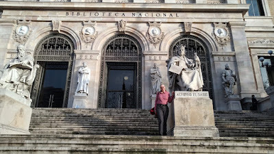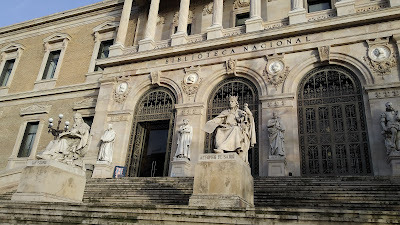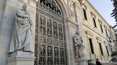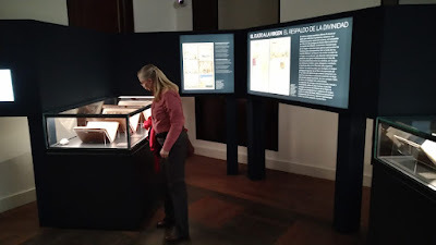The places housing the exhibits were appropriate because they're the two most important libraries in Spain. Even the humblest of libraries is a temple of learning. These buildings, with their grandeur and special designs for preserving and honoring books, are cathedrals of learning.