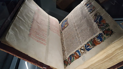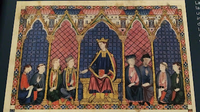 The exhibits were appropriate because Alfonso was the Learned King, and the exhibits were of his books: the books he had his scholars research, write, lay out, and decorate in his court, and which he would've inspected to make sure they were to his standard and then left for future generations in his testament. Those books.