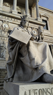 In the afternoon, I read the introduction of Trovador de Santa Maria to Mario, both to share with him the importance of this occasion and to get used to speaking about these things I so love. He suggested we go to the Plaza Mayor and read the introduction out loud at the fountain with Alfonso X's statue so he could hear his present. I wept copiously at the suggestion, thinking about all the years I've studied Alfonso X and how I wish I could know whether he likes my gift to him.