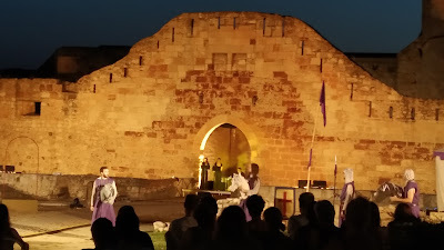 I was able to go to Sevilla for my own birthday and see the play La última cantiga, twice. It tells the story of the last years of Alfonso's reign and life and is punctuated by cantigas played by Cantica and Emilio Villalba (wonderful artists!). I know the history well, and to see it played out before my eyes was truly thrilling. Too few have been the times I've been to an event with cantigas played live. This is how they were meant to be enjoyed, in all their foot-tapping glory!