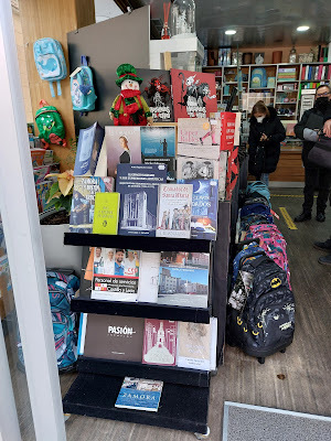 Specifically, in December of this year, I saw (and snapped a photo) of the Spanish version of my dear short story collection, Our Lady's Troubadour , for sale in the local section, clearly visible from the street, at Mil Hojas Bookstore, Zamora, Spain.