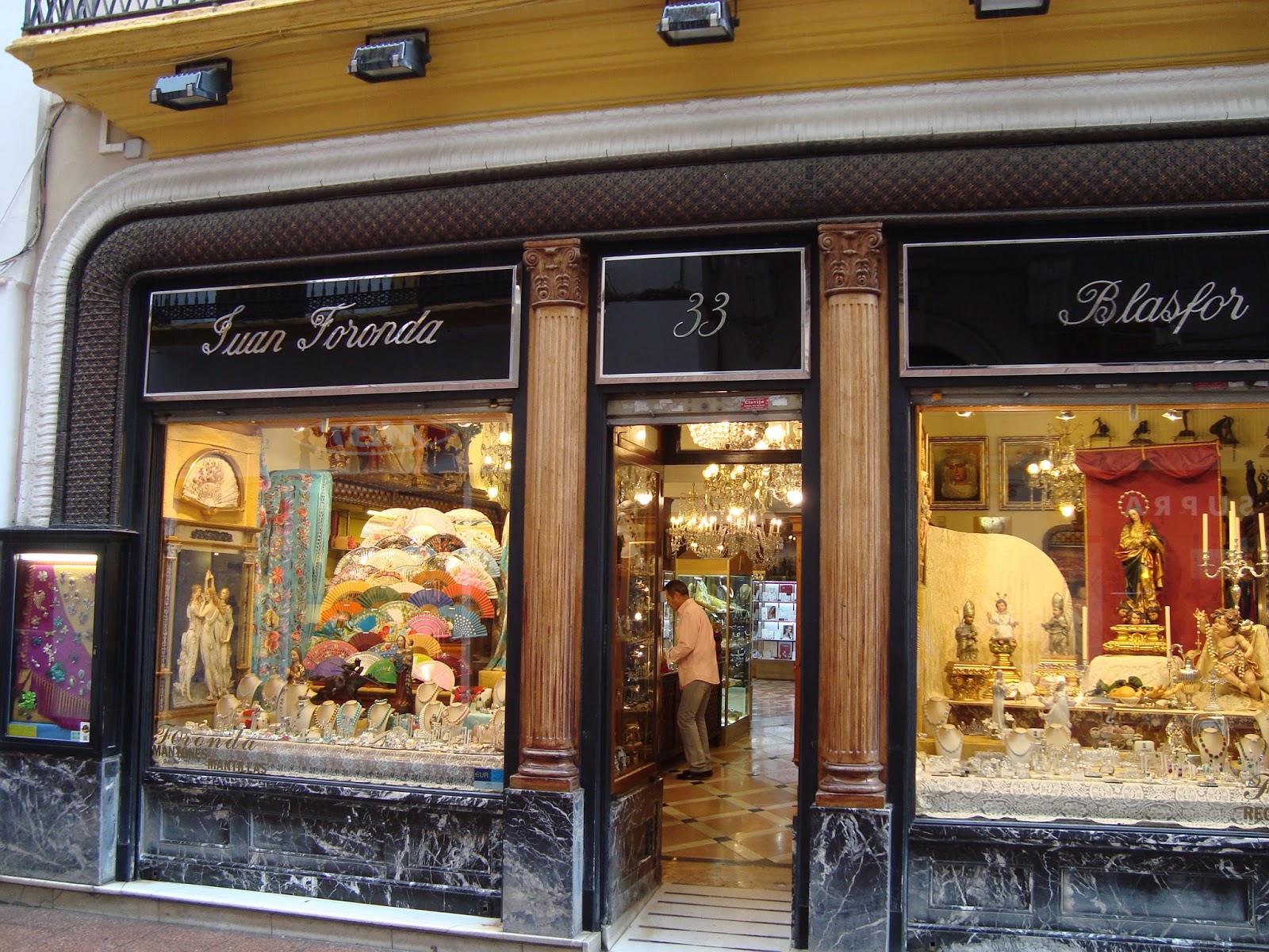 It was weird to have the sky grey. Was this really Sevilla? We started at the Corte Inglés, department store par excellence, where we looked in the tourism section for an umbrella. It was hard to decide—how many times are you going to need an umbrella in Sevilla?