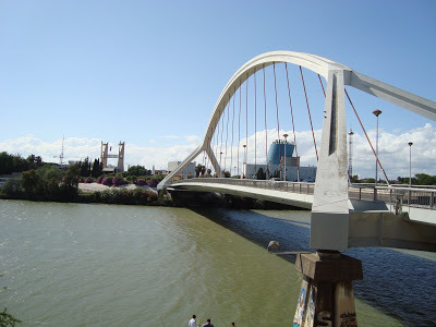 Once we were on our way to my city (Sevilla! I thought I wasn’t going to see you! You sly gal.), I drowsed, but the smile never left my face. All the events of the past day kept replaying for me in the most delightful way. We had brought our mp3 disc with all of Manolo's songs, and listened to about six hours of it. The beautiful countryside looked so familiar. We zipped past Córdoba and I had a straight shot to see down the Guadalquivir to the Mezquita. Be still my heart!