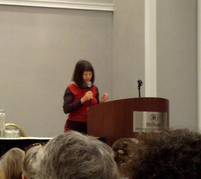 Geraldine Brooks spoke at lunch the first day. She entranced the audience talking about her career as a war correspondent journalist, how she got into writing novels, and how she gets her book ideas with the concept of implausible history: true events that no one could make up. Describing the sympathy both authors and readers can feel with characters in spite of geographical, cultural, and temporal distance, she said, "She loved as I loved, and that's as good a place to start as any."