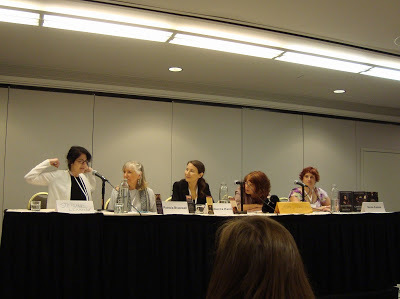 High on potential knowledge, I entered Putting the Her in History, which had possibly the best energy of any of the panels. Women come up against challenges unique to them throughout history, and yet only .5 percent of recorded history is occupied with women's lives. Each panelist had an interesting story to share, whether about her heroines or how she is perceived as a writer who is a woman. Rebecca Kanner has been asked why she's so "stuck on violence," and we imagined no male author has ever been asked that question. Such dynamics are one reason I decided to use my initials for Seven Noble Knights . Most inspiring, of course, was the idea that writing about women validates our stories and lets us know we're important.
