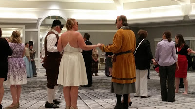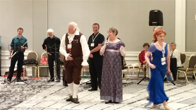 The Jane Austen Society provided authentic live music and instructors for the dance and the whist. I would likely have hung back, but author Stephanie Renee Dos Santos pulled me in for the first round of dancing. The instructor taught each dance for ten or twenty minutes before we really did it while he called out the moves, and it had a strong feeling of square dancing, lots of holding hands, promenading, and changing partners. I was exhausted!