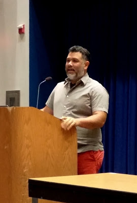 Author Gillian Bagwell entered in signature polka dots and dropped the bombshell that dialogue can do a lot of the heavy lifting of exposition and description. Drawing from her time as an actress, Gillian illustrated arcane writerly secrets in fresh and entertaining ways. If I don't nail the beginnings of all my books and stories from here on out, it won't be the fault of these fantastic instructors.