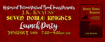 Seven Noble Knights, the only novel with Doña Lambra and Gonzalo González, is available for preorder now. The Grand Book Launch Blog Tour has already kicked off, and be sure to attend the Facebook launch party on December 15 for fun and prizes.