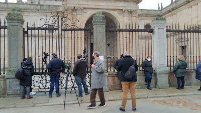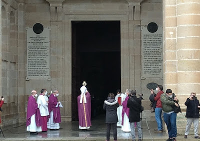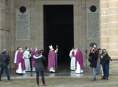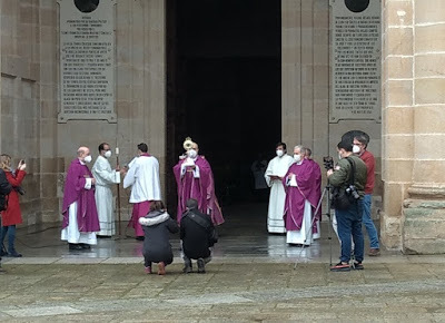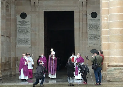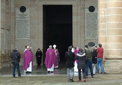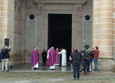 Today, I didn't attend mass, as I didn't want to occupy one of only 25 spots because I'm not Catholic and wouldn't want to get the ashes on my forehead. That spot should go to someone else. But I went to the cathedral door to witness the rite and absorb the medieval atmosphere. It felt a little like the old days, arriving at a beautiful, historical spot in Zamora to wait for an event, like Holy Week, but with social distancing.