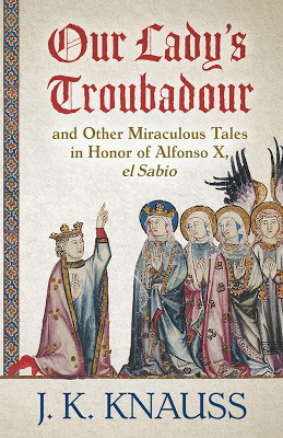 I've been pounding away at the keyboard, seriously. You can hardly see the letters anymore, my nails have been scraping them off so much! This has been almost all to bring you a book that's really important to me: Our Lady's Troubadour and Other Miraculous Tales from the Cantigas de Santa Maria in Honor of Alfonso X, el Sabio.
