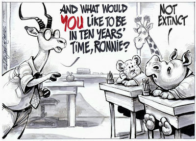 I also went to the university library to check out books and online resources about rhinos for that novel I've pledged to write.