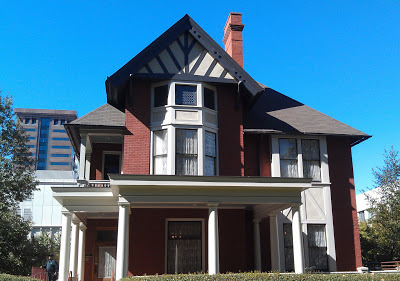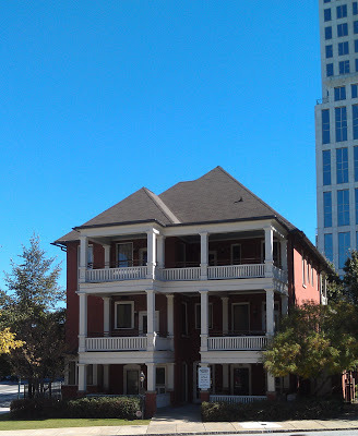 The house has been restored to what Margaret Mitchell and her husband might have wished it looked like when they were living there. This is what would have been the front. You can kind of get a sense of the way this historic building sits among business high-rises, all by itself now.