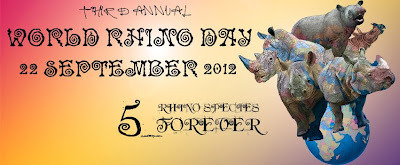 Rhinos are also endangered, because it's not always kind humans who come into contact with them. I cannot comprehend why anyone would want to harm a rhinoceros. Two of the stories in my new rhinoceros anthology inevitably deal with this issue. "Rhinoceros Dreams" and "A Business Venture in Glue" have been previously published, so today I would like to discuss the inspiration and intent of "Not Extinct Yet." It ties in beautifully with the theme of this year's World Rhino Day: Five Rhino Species Forever.