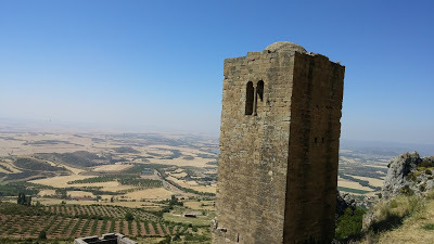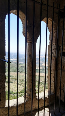 to the castle with a bridge or tunnel at some point. The day we visited was hazy, but we still got a good sense of why this location was chosen. The entire area known as the Hoya de Huesca, and more, is laid out before the castle. The guide said that on a clear day, she's seen the cathedral towers in Zaragoza, 85 kilometers to the south.