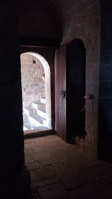 the enemies couldn't see Loarre, but Loarre could see them.Its name is Loarre, and I'm only disappointed it's not closer to where I live. My friend Daniel and I found Loarre in our trusty guidebook of Romanesque architecture in Spain by Jaime Cobreros. I'm always up for a castle, anyway, but the rave review Cobreros writes for Loarre would've convinced even the most entrenched castle skeptic. We planned to see it on our way out of Aragón after my week-long university course in Jaca.