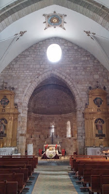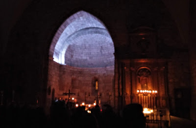 Stations of the Cross service in 2019. Walking inside, we're met with spaciousness. In the thirteenth century, the triple nave was reduced to a single one by removing rows of columns, which opened up the space considerably. We've seen this in San Cipriano, as well, and it seems to be a typical move in the transition from Romanesque to Gothic.