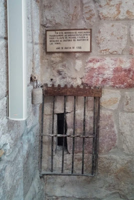 image was locked up tight. When we visited the site, there was a plaque showing a pilgrimage route from France to Santiago de Compostela that went through Santa Maria de Salas, making the church an obligatory visit for any pilgrim--if it's ever open. Unlike the Villasirga cantigas, none of the Salas miracles mention Santiago. I can think of two good reasons. First, Salas is right on a Santiago pilgrimage route, while Villasirga is a bit off the direct path. Villasirga had to do publicity to draw in pilgrims, but Salas had a steady stream with no additional propaganda necessary. Second, the Cantigas are the product of the court of Alfonso X, el Sabio, King of Castile and León and many other territories north and south, but not of Aragón, where Salas is located. Alfonso X was related by marriage to Aragonese royalty, but why bother to promote an area that wouldn't bring economic benefit directly to one's Crown? That old Castilian pragmatism at work.
