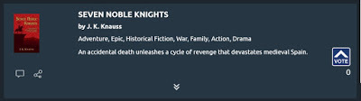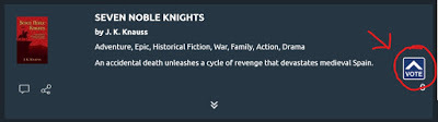 When you have Seven Noble Knights in your sights, you can expand the description using the white arrows at the center bottom, share the contest, or comment using the square speech balloon under the book cover, which is linked up to Facebook comments.