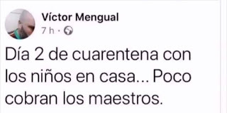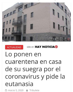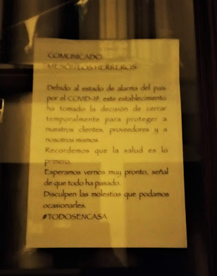 pleasure for this logophile. This is Spain, and so there is an outpouring of emotional support on social and traditional media during this strange, history-making time, with a constant torrent of inspirational and humorous messages. I've only run across a few pieces of "fake news" among all this genuine love for our fellow humans. Then there are the people who make videos of themselves in quarantine who have swimming pools or a 40-acre ranch to run around in. Best of luck to those folks, but I don't have any of that.