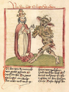 Indeed, most of these stories have happy endings. Once the dealmaker has been sufficiently frightened and sees the error of his ways, either a loophole is found in the contract or a trusted saint arrives to cast the devil away. Sometimes, the trusted saint is the one who finds the loophole. In these stories, we find that the devil is actually not a very good lawyer. This is in direct contrast to the saints, who spend a lot of time practicing their advocacy skills in the heavenly court for the sake of the poor souls who pass through the gates with torts and misdemeanors.