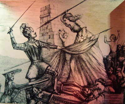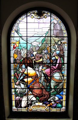 the giant battle in Chapter VIIII. "You've got to get in touch with a seven noble knights scholar," they said. "He's a teacher, like you, not in Salas, and he's written an extensive history of Salas and is cataloging all the artistic representations of the legend. Here's his email. While you're here, step into our Culture Palace. It's on the site of the seven noble knights' house and has a really cool stained glass window. And have you seen the ark with the heads in the Church of Saint Mary? You can't miss it."