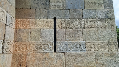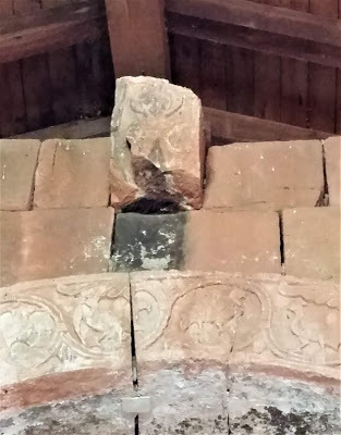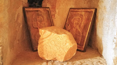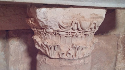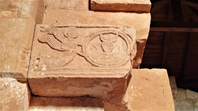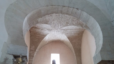 When you come upon the site from town, it's not impressive. The wall that faces you is unadorned and has a bricked-up door. It turns out that even this unsightliness tells us an important part of Quintanilla's story. When it was first built, near the end of Egica's reign, and for a few hundred years thereafter, the church was decorated all around and occupied three times the space it does now. In the ninth or tenth century, a major restoration project was undertaken. Some time after it was donated to the monastery at San Pedro de Arlanza in 1038, Quintanilla entered a long, slow period of decline, and two thirds of the structure caved in and/or was harvested for the stones to be used in other buildings long since vanished.