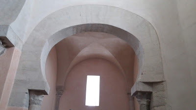 Most writers discussing the church use the town's name to refer to the temple. I first discovered this rare evidence of Visigothic activity in 2015 during my second adventure in Spain with my beloved, now departed, husband. We were on our way to see Salas de los Infantes and other Seven Noble Knights locations for the first time, so when I saw the diminutive pink sign on the highway that indicated "Visigothic temple, seventh century" this way, we didn't feel we could spare the time that morning.