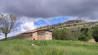 Photo 2015 Jessica Knauss Returning to Burgos after the day's rainy adventures, we drove past a patch of fossilized sauropod tracks and the village of Quintanilla de las Viñas and got the full impact of where the temple sits. The barest indications of civilization, Lara Rock looming with its fascinating caves, and the evocative ruins of the Castle of Lara de los Infantes (where the first Count of Castile was born, I found out later!) off in the distance set the weight of the centuries firmly upon these stones.