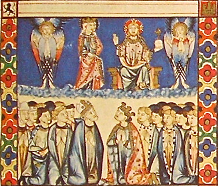 in the bottom center is Alfonso.In or about 1269, it seems that a horse kicked Alfonso in the face. Although not a matter of state, this incident would influence each one of Alfonso's subsequent actions. Poor healing of a nasal fracture resulted in repeated infections, which eventually led to debilitating pain and cancerous tumors, which disfigured and ultimately killed him. This highly intimate knowledge helps to humanize the drama of Alfonso's life. If we consider the severe physical pressures he was suffering as well as the confusing factionalism of his subjects, his equivocation and occasional rash behavior becomes much more understandable. Alfonso X would be remarkable in any context, but he stands out in especially high relief against the society in which he lived. Literally backwards-looking, Alfonso's subjects demanded time and again that he return his government to what it had been during previous reigns. The king wanted the best for his people, but he was never able to fully grasp just how hard he would have to push them into a future that made no sense to them. But, even at the sad end of his life, Alfonso probably realized that his intellectual legacy would prevail and that history would (eventually) regard him kindly. In this way, Alfonso still inspires us to believe in the value of education for the betterment of society.The figure of the Wise King first sparked my attention as an undergraduate. It has steered my entire academic career, and sustained my interest through the unexpected work in history, linguistics and law that became necessary in order to complete my dissertation on his legalistic and literary output. To date, the best Alfonsine biography in English is Joseph O'Callaghan's The Learned King (1993).