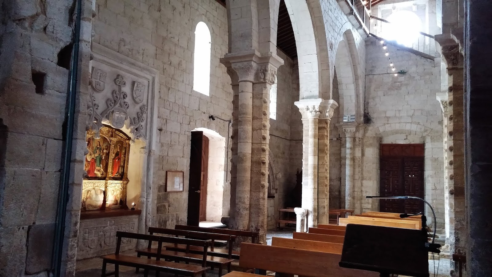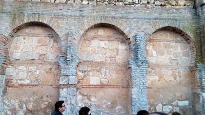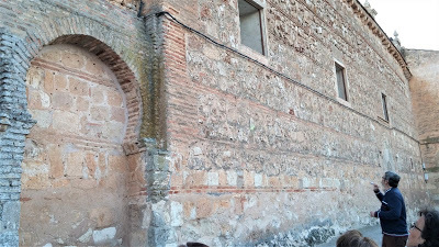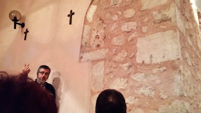 look like and what they ought to look like. Our guide, David, took the opportunity to explain his views on restoring medieval buildings. A lot of times, he said, restorers leave the stone exposed so people can feel like that's what it looked like way back when. But, David said, of course they didn't leave the stones exposed, indoors or out. They wanted smooth surfaces for painting or otherwise decorating indoors and to give a finished look and protect the stones outdoors. The buildings lasted this long because of the protective layers of stucco or other materials that impeded weather getting into the mortar and cracking the stones into rubble. David's central question in Maderuelo was why don't they restore that most lovely and useful part? It would be even more beautiful for visitors to gaze upon and would prevent further weatherization.