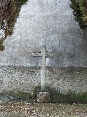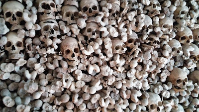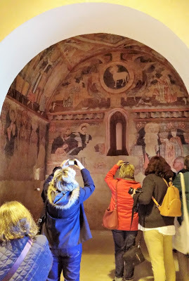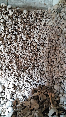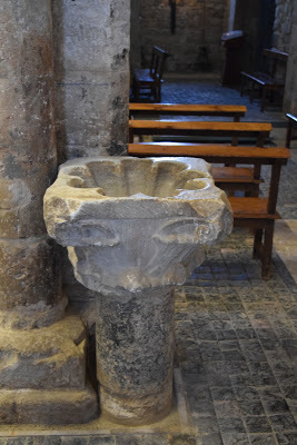 One visits the ossuary directly after a visit to the old chapter house, which is now the baptistery. New life and death in the space of a minute. Memento mori.