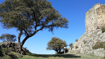 In this post and the next, I present two ruined castles of Zamora province. Whether they provoke wistful nostalgia for what's gone, a Romantic remembrance of a brave past, or just seem like good places for a picnic, there's no denying that ruined castles present a unique pleasure when you get to climb around on them. In the case of Castillo de Alba, the climbing is literal.
