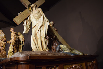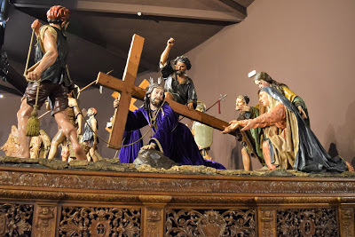 All photos in the Holy Week Museum 2018 José Pablo Palencia Morchón In the Middle Ages, the Church sought out ways to get the message to the lay population. How could regular people take part in a text-based religion when hardly any of them could read? In northern Europe, Passion Plays and Mystery Plays took hold because the people put themselves in the holy roles. These traditions survived the Protestant Reformation because there are no images involved, only flesh-and-blood people acting as obvious proxies.