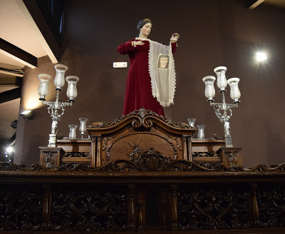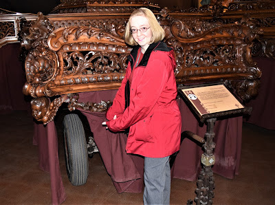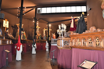 Holy Week Museum Given what I know about float bearers, and the penitent interpretation I gave them, I was disappointed to find, in the Holy Week Museum, that some floats move along on wheels.