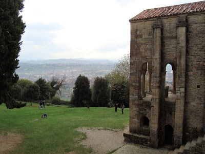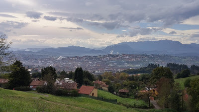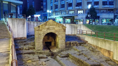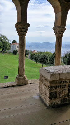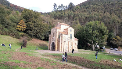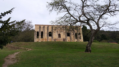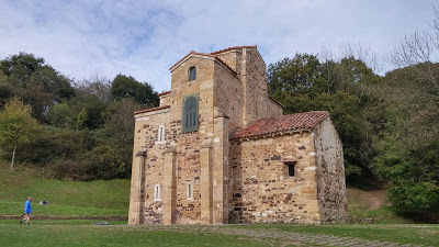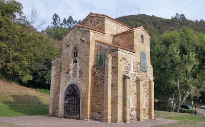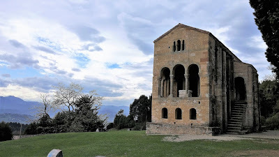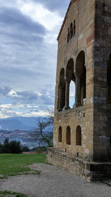 After walking one kilometer, huffing and puffing, and being overwhelmed and thrilled with San Julián de los Prados, it was time to sit down in the nearest plaza and call a taxi. I was finally going to a place I'd always thought was in the middle of nowhere. All the photos I'd ever seen and the awe with which the buildings were described suggested they were hard to get to. As it turns out, Naranco Hill, home to two mega-important ninth-century monuments, is not even a suburb of Oviedo, capital city of Asturias. That said, it was probably two kilometers uphill, and in my weakened viral state, it was just as well I took a taxi so I could enjoy it more.