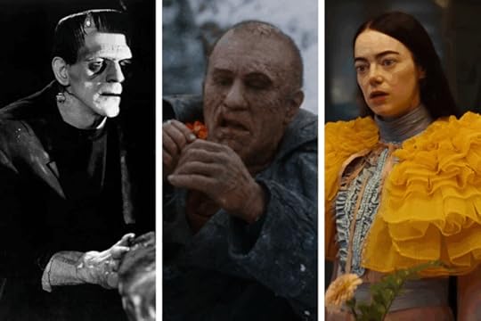 Poor Things asks the question, what if Victor had actually taken responsibility for his creation and tried to raise and nurture it? Bella (Emma Stone, who won the Oscar for Best Actress) is being raised by Godwin Baxter (Willem Dafoe), a mad scientist who looks like Frankenstein’s monster, though it seems Baxter was born in the usual way and “merely” experimented on significantly by his father. Bella’s body is that of a woman who died by suicide while very far along in a pregnancy. Baxter took the fetus’ brain and put it in the woman’s reanimated body.