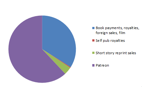 Book payments, royalties, foreign sales, film 16000 Self pub royalties 167 Short story reprint sales 1750 Patreon 29179 TOTAL $47,096